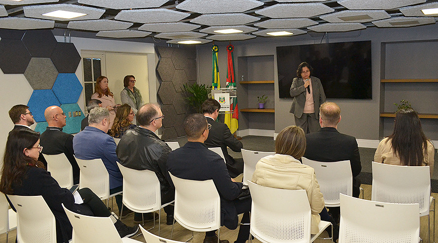 Representado pelos diretores Darko Bufolin, José Eduardo e Paulo Mahler, o Sindifisco-RS participou, na tarde de segunda-feira (7), da cerimônia de posse da nova auditora-fiscal da Receita Estadual Andréia Maria Bibiana Ramão Klunck, no Espaço Inovação da Secretaria da Fazenda. Na oportunidade, os dirigentes do sindicato parabenizaram a nova colega e cumprimentaram as autoridades presentes.