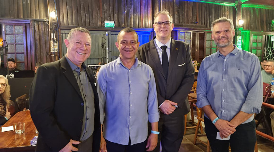Representando o Sindifisco-RS, os diretores Eroni Numer, Paulo Mähler e Felipe Caldeira prestigiaram o evento de aniversário da deputada estadual Eliana Bayer (Republicanos), realizado na quinta-feira (16), no CTG 35, em Porto Alegre. Os dirigentes levaram as felicitações da Diretoria do Sindicato e aproveitaram para agradecer o apoio da deputada às pautas da categoria. Na ocasião, as lideranças do fisco estadual também conversaram com o deputado federal Carlos Gomes (Republicanos), atual secretário de Habitação e Regularização Fundiária do governo gaúcho, sobre o trâmite da reforma administrativa no Congresso Nacional. Os dois parlamentares são parceiros dos auditores-fiscais da Receita Estadual do RS.