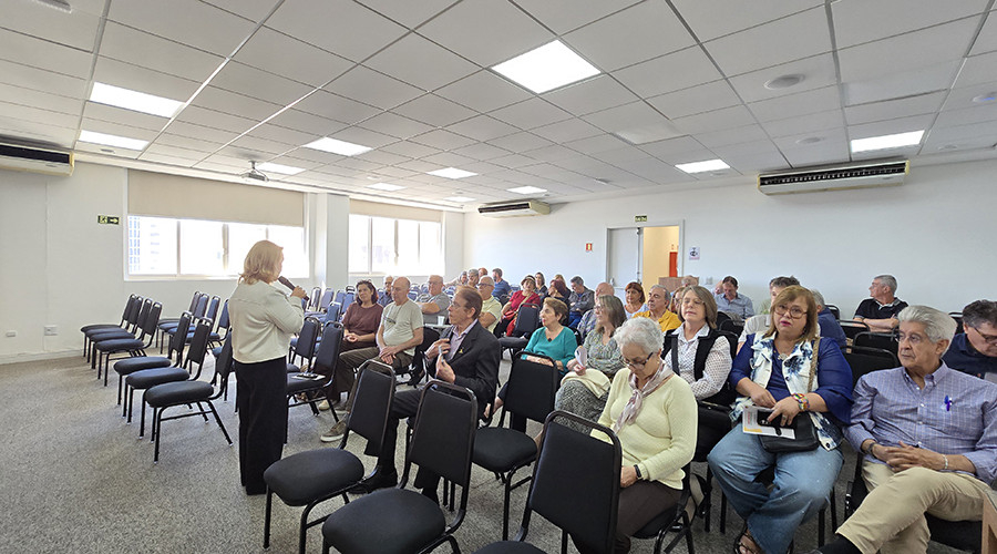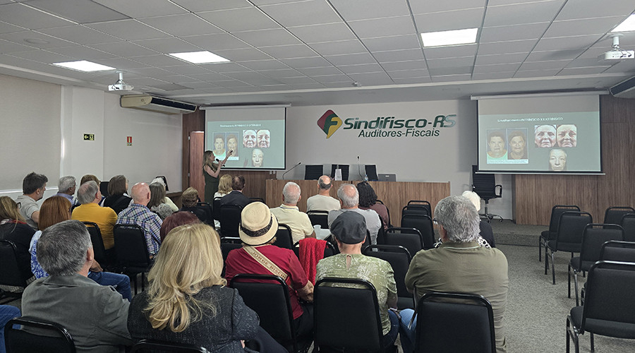 A sede administrativa do Sindifisco-RS recebeu, nesta quinta-feira (6), o último encontro do ano do projeto “Conversando com Aposentados e Pensionistas”. O momento foi de reencontros, troca de experiências e fortalecimento dos vínculos que unem os auditores-fiscais aposentados e pensionistas da Receita Estadual do RS. A atividade mensal é promovida pela Diretoria de Aposentados e Pensionistas do Sindicato, sob coordenação da diretora Silvia Maria Benedetti Teixeira.